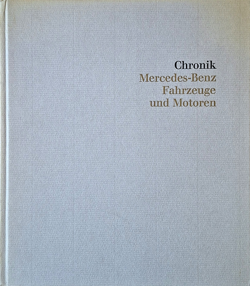 Chronik – Mercedes-Benz Fahrzeuge und Motoren is een officieel chronologisch overzichtswerk, uitgegeven door Daimler-Benz AG in Stuttgart-Untertürkheim. Het boek documenteert systematisch de volledige voertuig- en motorengeschiedenis van het merk, van de vroegste constructies tot de modellen van de jaren zestig en zeventig. Met uitgebreide illustraties en technische gegevens biedt het een diepgaand inzicht in de evolutie van Mercedes-Benz als ingenieursmerk. De sober vormgegeven linnen band met goudopdruk onderstreept het wetenschappelijke en gedegen karakter van dit naslagwerk. Dit exemplaar betreft een uitgebreide herdruk uit 1972.